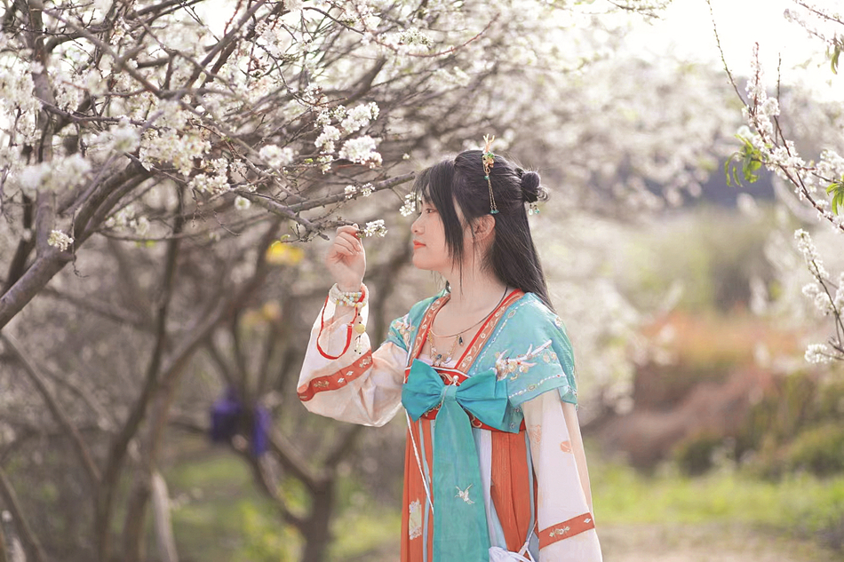 一團(tuán)團(tuán)一簇簇的李花隨風(fēng)搖曳,淡淡的清香縈繞鼻尖,令人沉醉。李子園里,漢服愛好者們?cè)诶顦湎沦p花,騎行愛好者在李樹下穿行,還有不少市民和攝影愛好者拍照留影,各得其樂,盡享美好春光。