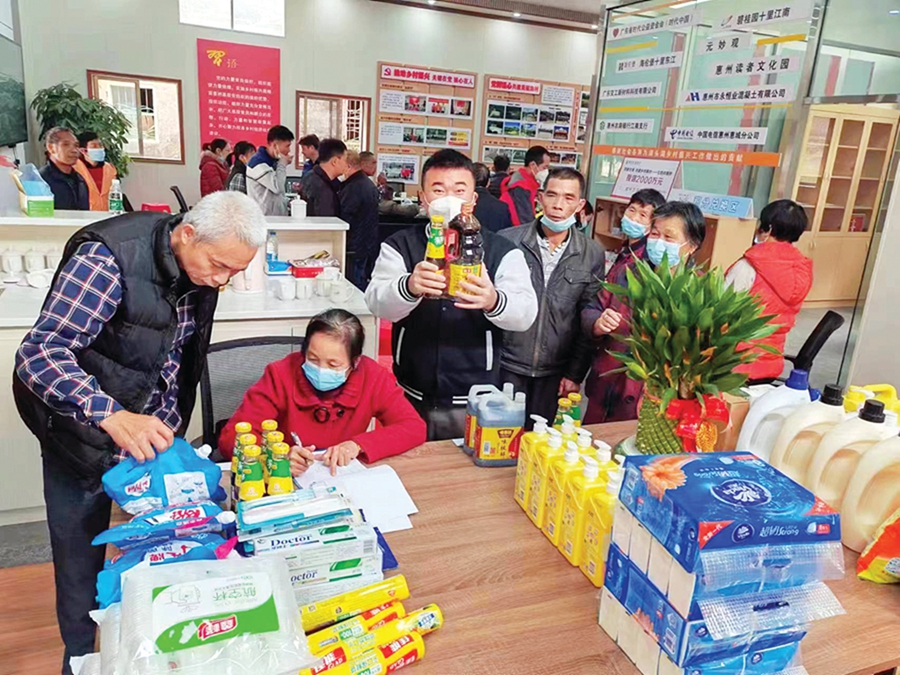 江南街道七聯(lián)村津頭湖村民小組村民以積分兌換獎(jiǎng)品。