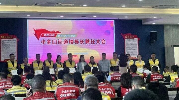 日前,小金口街道召開樓棟長聘任大會(huì),街道黨工委委員、辦事處副主任張玲玲為11名樓棟長代表頒發(fā)了聘任書,各網(wǎng)格長和樓棟長代表共180人參加了會(huì)議。
