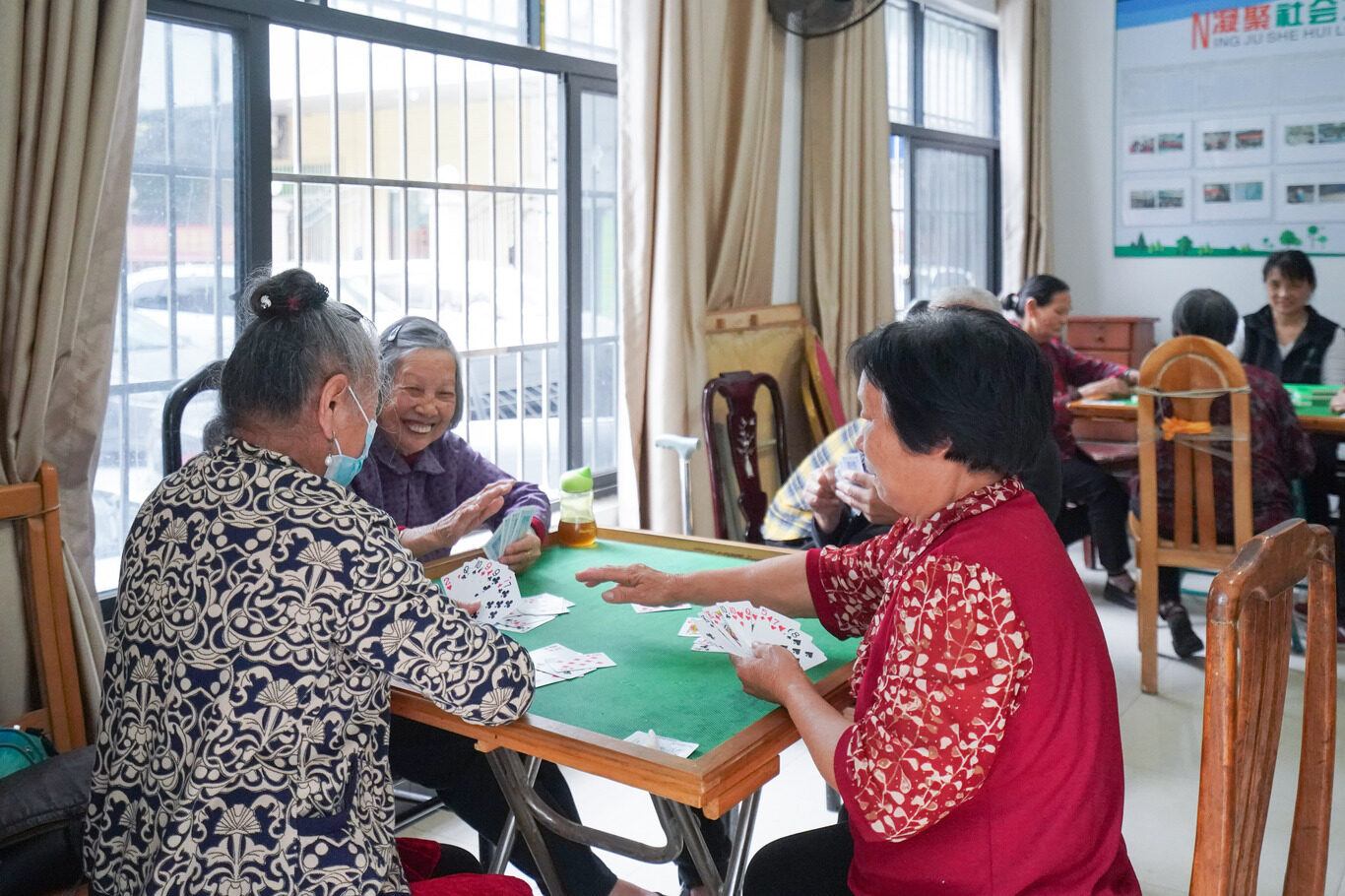 改造后的群芳苑,老人們在老人活動(dòng)中心打牌消遣。