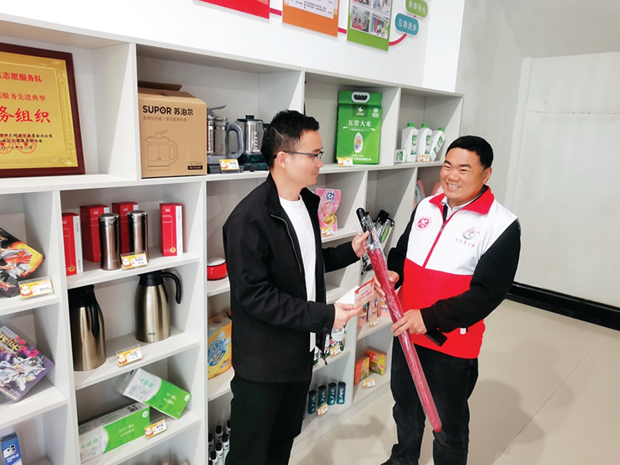 東湖社區(qū)“積分銀行”為志愿者服務(wù)加油。