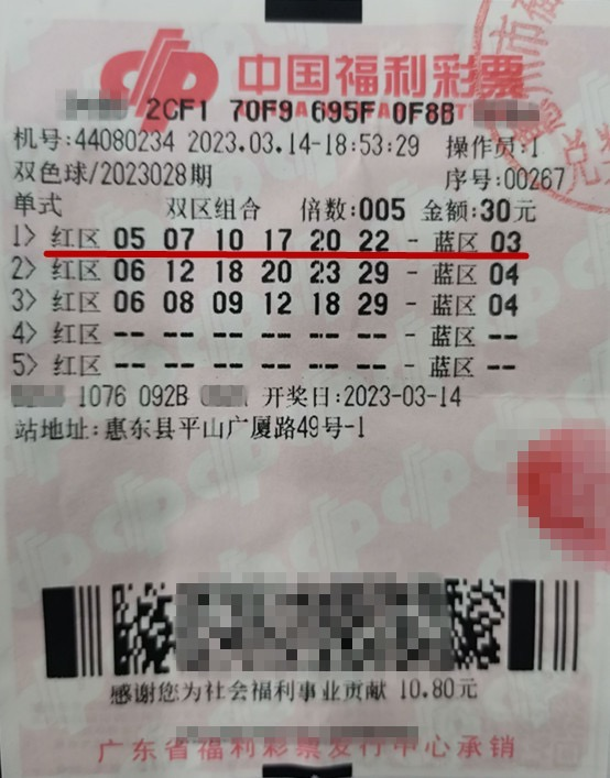 近日,惠州一彩民喜中雙色球5注二等獎,獎金超100萬。