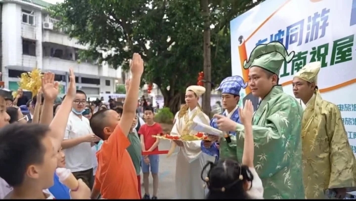 在五一國際勞動(dòng)節(jié)當(dāng)天,由演員扮演的江南四大才子之一“祝枝山”穿越時(shí)空,穿梭于“他”曾居住過的祝屋巷街頭,與來往的游客互對(duì)傳統(tǒng)詩詞,以沉浸式體驗(yàn)的方式,讓游客感受到鮮活有趣的歷史文化。