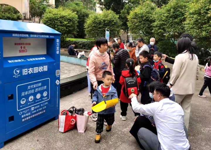 為方便居民投放廢舊衣物,惠城區(qū)小金口街道近日在轄區(qū)投放60多個智能舊衣回收箱,并舉辦垃圾分類進社區(qū)宣傳活動,加深居民對垃圾分類的認識,提高居民參與度。