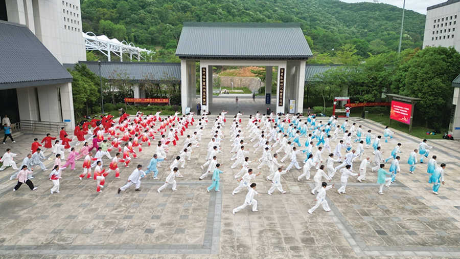 150名太極拳學(xué)員展示培訓(xùn)成果。 惠州日?qǐng)?bào)記者鄧惠婷 通訊員馮雪輝 攝
