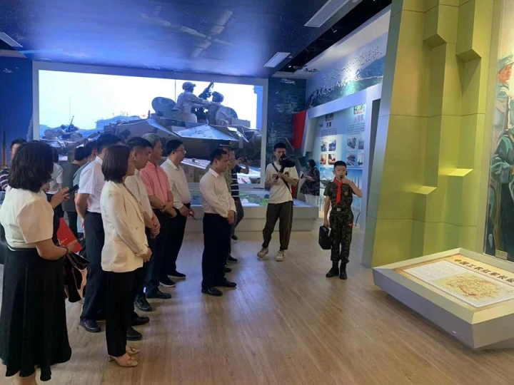揭牌儀式后,在小小紅色講解員的引導(dǎo)下,與會(huì)人員來(lái)到新建成的全民國(guó)防教育展覽廳參觀。一段段記載崢嶸歲月的歷史事件以圖文并茂的形式,將大家?guī)霘v史隧道,感受硝煙彌漫的戰(zhàn)爭(zhēng)歲月,體會(huì)偉大革命精神。