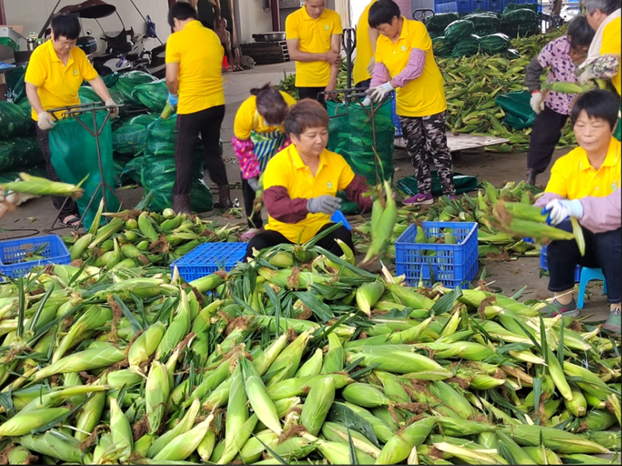 惠城區(qū)汝湖鎮(zhèn)田間地頭成片的甜玉米喜獲豐收。