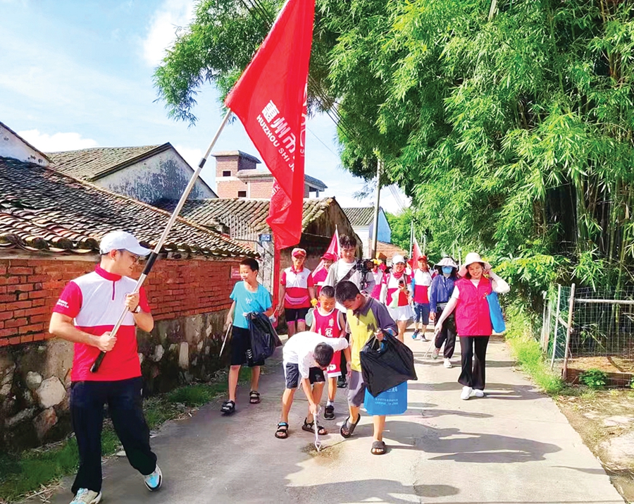 徒步汝湖美麗鄉(xiāng)村,撿拾垃圾宣傳環(huán)保。