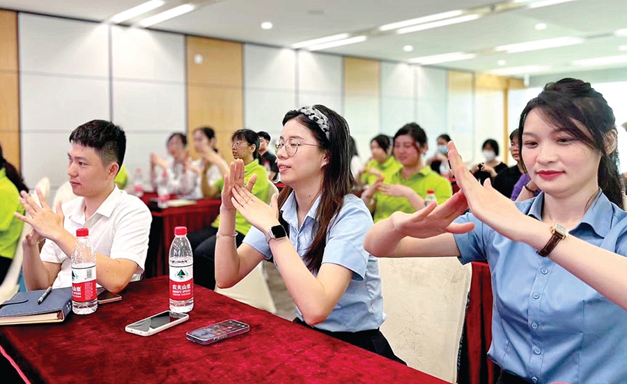 職場青年學(xué)禮儀。 惠州日報(bào)記者彭紅霞 通訊員藍(lán)利芳 攝
