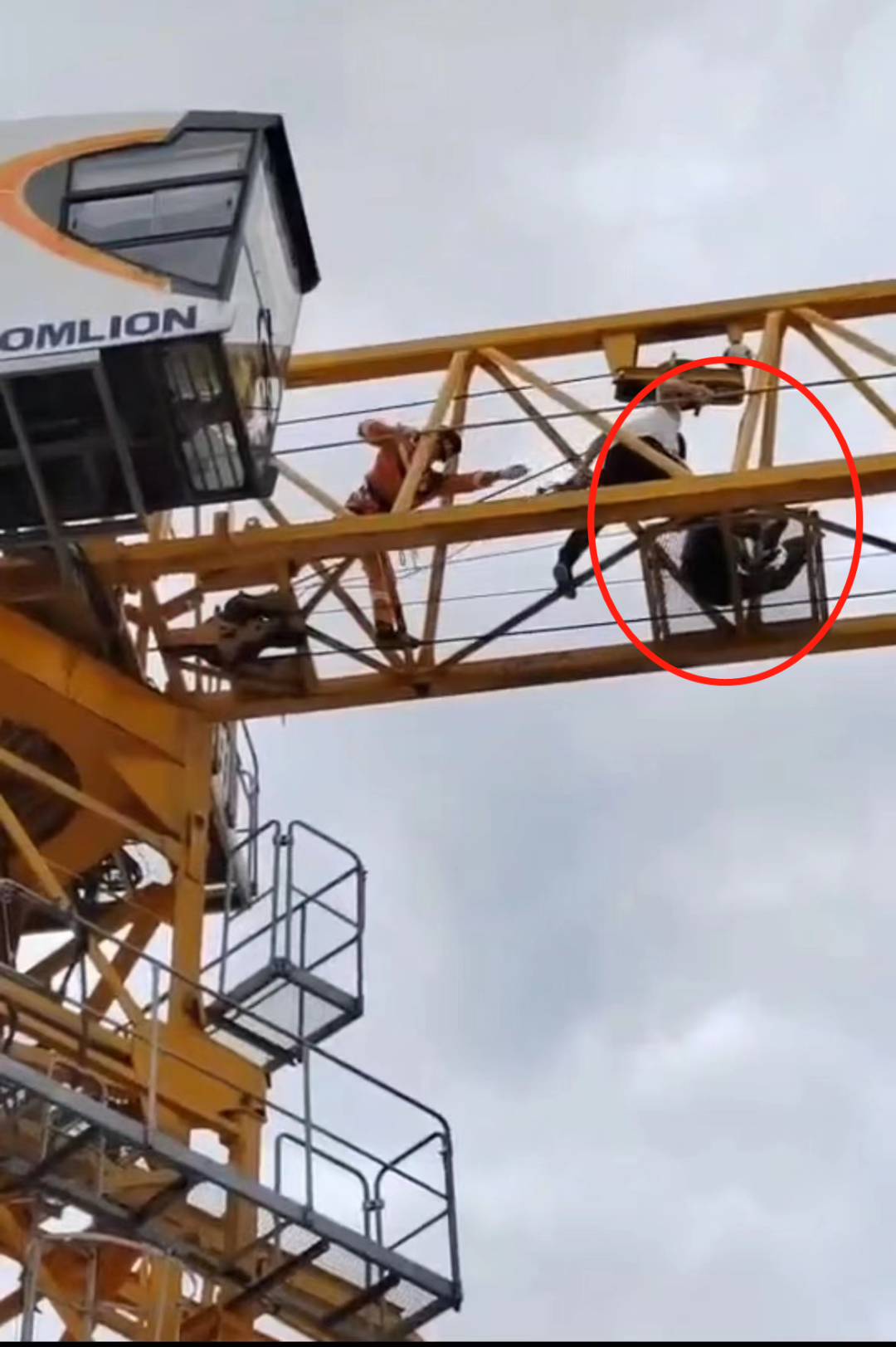 救援人員發(fā)現(xiàn)該名男子在吊塔高約120米處的大臂上,沒(méi)有任何保護(hù)措施。經(jīng)了解,該男子由于未拿到工錢(qián),一氣之下鋌而走險(xiǎn)。