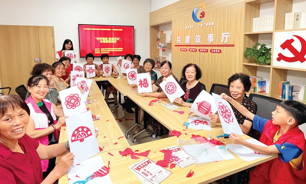 湖畔新城小區(qū)居民參加“黨員回家、服務(wù)萬家”紅色驛站剪紙活動。 惠州日報記者彭紅霞 通訊員楊雪芳 攝