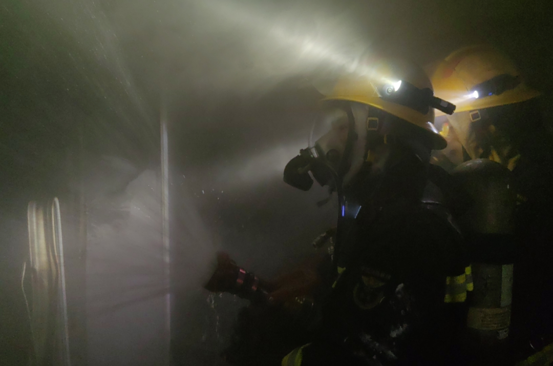 經(jīng)偵查,著火點為901房主臥,902房有兩人被困,惠城區(qū)東平消防救援站立即組織六人內(nèi)攻小組進(jìn)行搜救。約5分鐘后,成功將兩名被困人員救出,并立即移交120進(jìn)行救治。