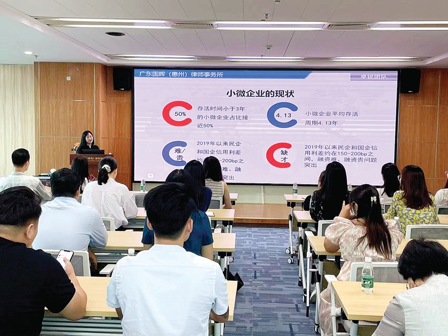 惠州日?qǐng)?bào)訊 (記者彭紅霞 通訊員陳晨芳)日前,有企業(yè)向江北街道CBD樓宇企業(yè)服務(wù)站提出,經(jīng)營(yíng)過程中遇到一些法律問題需要咨詢。針對(duì)企業(yè)的需求,服務(wù)站工作人員通過走訪調(diào)研、分析研判,聯(lián)系有相關(guān)需求的企業(yè)30余家,特邀廣東國(guó)暉(惠州)律師事務(wù)所專職律師為大家答疑解惑。9月8日上午,一場(chǎng)以“小微企業(yè)如何避免常見法律糾紛”為主題的法律知識(shí)講座在華貿(mào)大廈舉行。