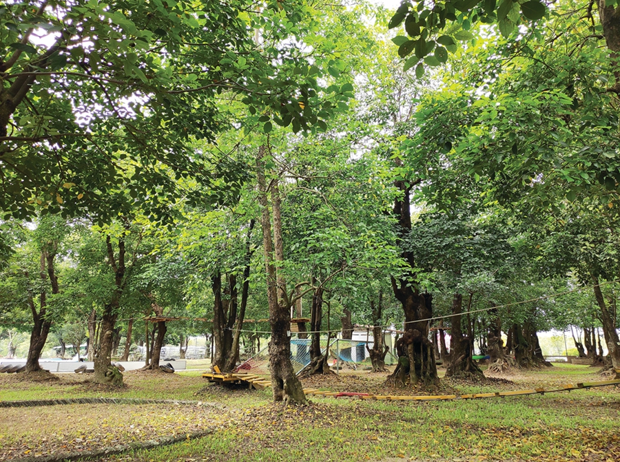 莊園門口一棵巨型盆架樹矗立,上百棵秋楓大樹整齊有序排列,數(shù)不清的橄欖樹、沉香樹、樟樹、榆樹、羅漢松、三角梅、紫薇等樹木點(diǎn)綴其間,鳥語花香,空氣怡人。這個(gè)占地120畝的古樹莊園,仿佛一個(gè)樹木大觀園,并兼顧了水上樂園、拓展訓(xùn)練、叢林探險(xiǎn)、木屋民宿等特色鄉(xiāng)村游項(xiàng)目,慕名而來的游客絡(luò)繹不絕。