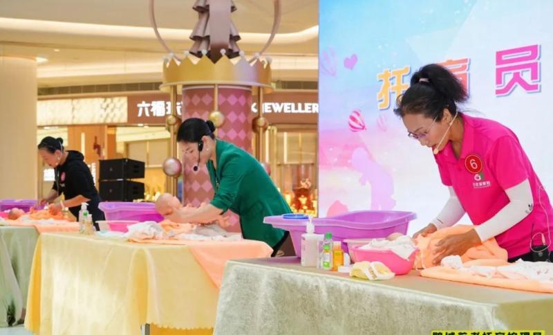 托育護(hù)理員比拼“為嬰幼兒洗澡”技能。 惠州日?qǐng)?bào)記者葉文青 通訊員蔡雯潔 攝