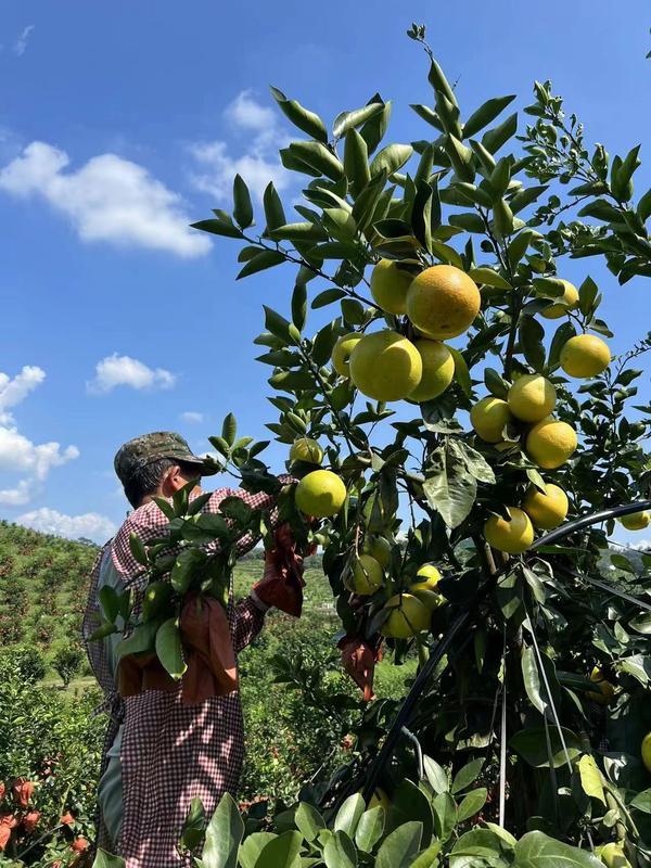 村民采摘葡萄柚。