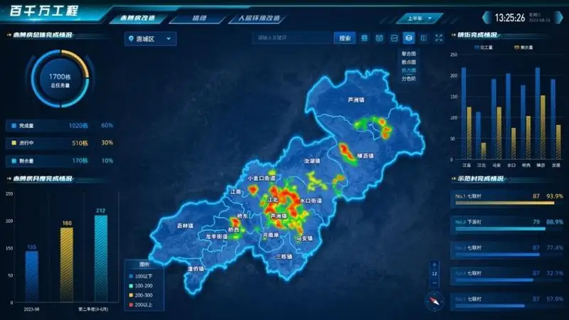 “塊數(shù)據(jù)+AI服務(wù)”賦能鄉(xiāng)村治理;凇皦K數(shù)據(jù)”建設(shè)惠城區(qū)百千萬工程鄉(xiāng)村振興建設(shè)應(yīng)用,以行政村為管理單元,對行政村內(nèi)的實有人口、樓棟、房屋建立可視化信息監(jiān)測,對鄉(xiāng)村振興赤膊房等專項建設(shè)情況實現(xiàn)一圖呈現(xiàn)、完工情況、完工效果一圖全覽。對問題房屋,結(jié)合鄉(xiāng)村全景及視頻監(jiān)控,進行圖上指揮調(diào)度,為鄉(xiāng)村振興建設(shè)賦能。
