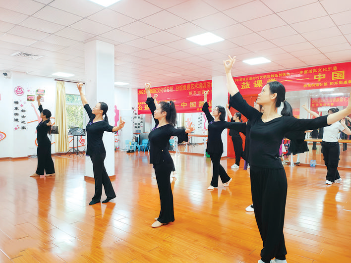 惠州日?qǐng)?bào)訊 (記者謝菁菁 通訊員吳少賢 林曉娜)為豐富轄區(qū)居民群眾精神文化生活,11月20日,惠城區(qū)文化館總館橋東街道分館聯(lián)合文化旅游體育服務(wù)中心舉辦的“我們的中國(guó)夢(mèng)·文化進(jìn)萬(wàn)家”系列活動(dòng)——中國(guó)舞公益培訓(xùn)班開(kāi)班,課程為期兩個(gè)月,逢每周一、周三下午4點(diǎn)至5點(diǎn)半上課。此次培訓(xùn)邀請(qǐng)專(zhuān)業(yè)機(jī)構(gòu)舞蹈老師進(jìn)行授課,吸引了近20名舞蹈愛(ài)好者參加。