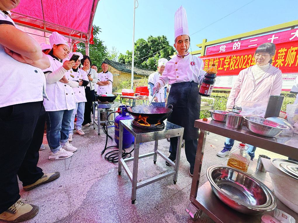 惠州日報(bào)訊 (記者鄧惠婷 特約通訊員周文媚 通訊員李雪英)“五花肉先焯水,放入姜蔥和農(nóng)家土炮酒,另外起鍋燒紅,放姜、蔥頭小火爆香。”日前,惠城橫瀝鎮(zhèn)墨園村村委會后的廣場上熱鬧非凡,50多名村民身著廚師服,頭戴廚師帽,圍住老師學(xué)習(xí)客家菜名菜——燜豬肉的烹飪技巧,并逐一上手練習(xí)。