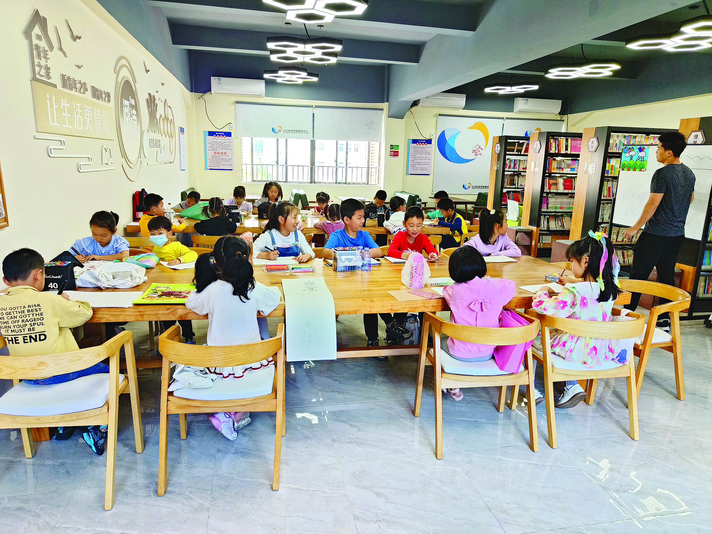 江北街道新時代文明實踐所開展少兒繪畫公益課堂。
