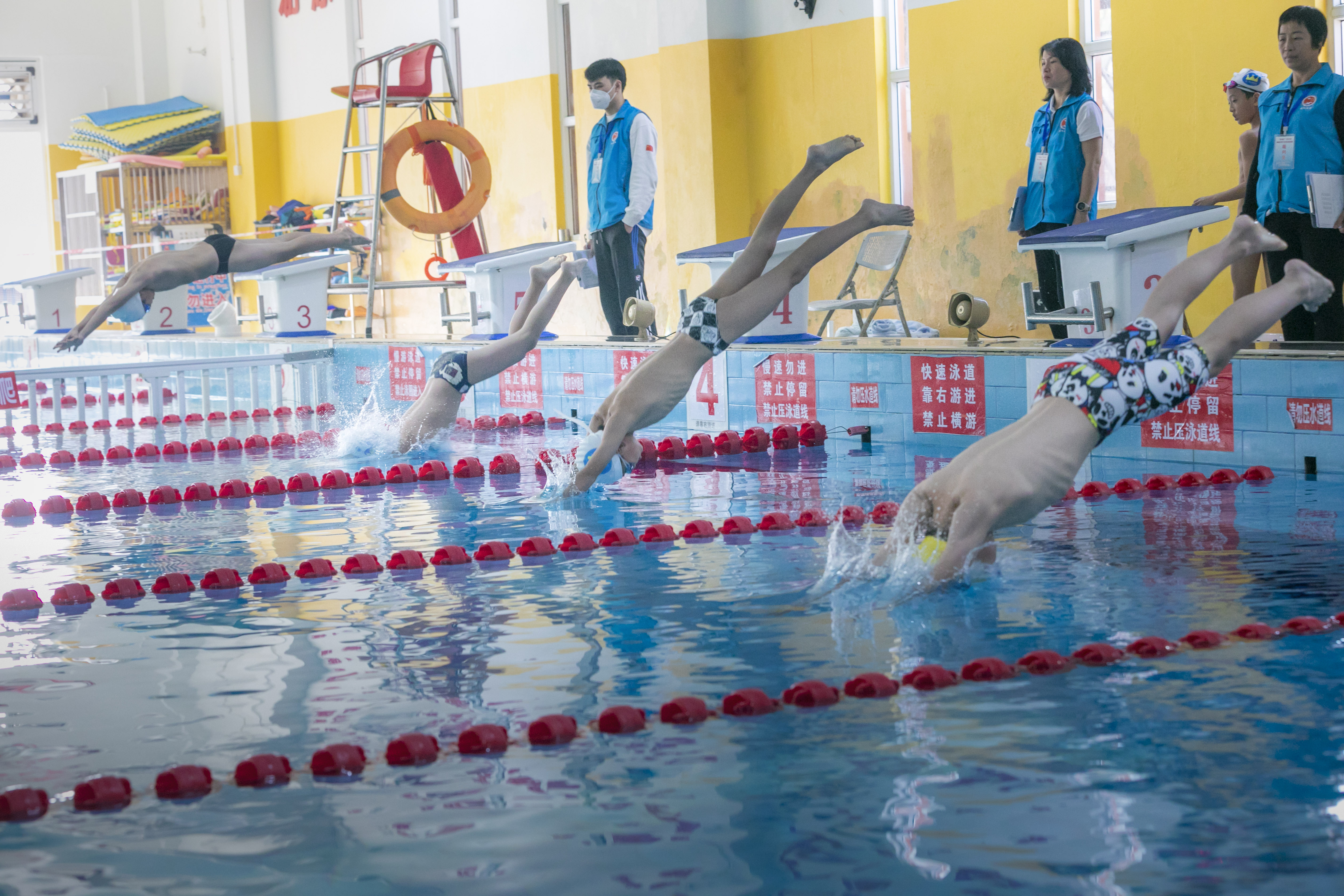 2023年12月30日上午8時30分,隨著一聲清脆哨響,比賽正式拉開序幕。小運動員們從跳臺上魚躍而下,滑行、擺臂、收腿、翻身、蹬水……每一個動作都矯健有力。爭分奪秒、奮力拼搏的孩子們贏得在場觀眾的陣陣喝彩。