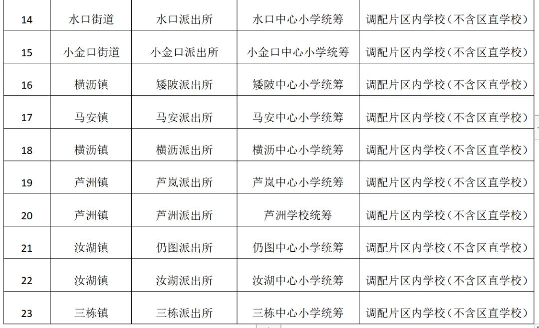 。ㄒ唬┗莩菂^(qū)集體戶籍按所屬派出所集體戶口地址統(tǒng)籌安排學(xué)校,具體安排如下: