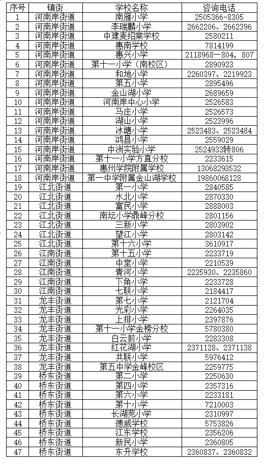 1.惠城區(qū)2024年秋季學(xué)期公辦小學(xué)招生咨詢電話