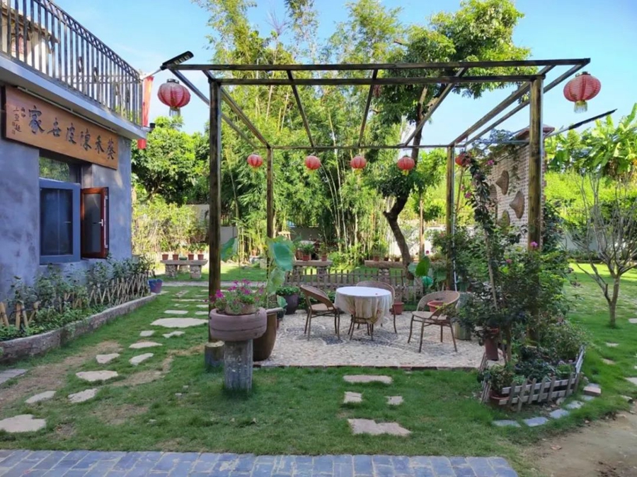 推開三棟鎮(zhèn)沙澳村村民何阿姨家的庭院門,門口小池波光粼粼,錦鯉穿梭其間,小石鋪設(shè)的小路曲徑通幽,穿過這寧靜的小天地。院中的綠植與木質(zhì)桌椅相映成趣,整個庭院彌漫著一種寧靜而活潑的氛圍,讓人心生向往。