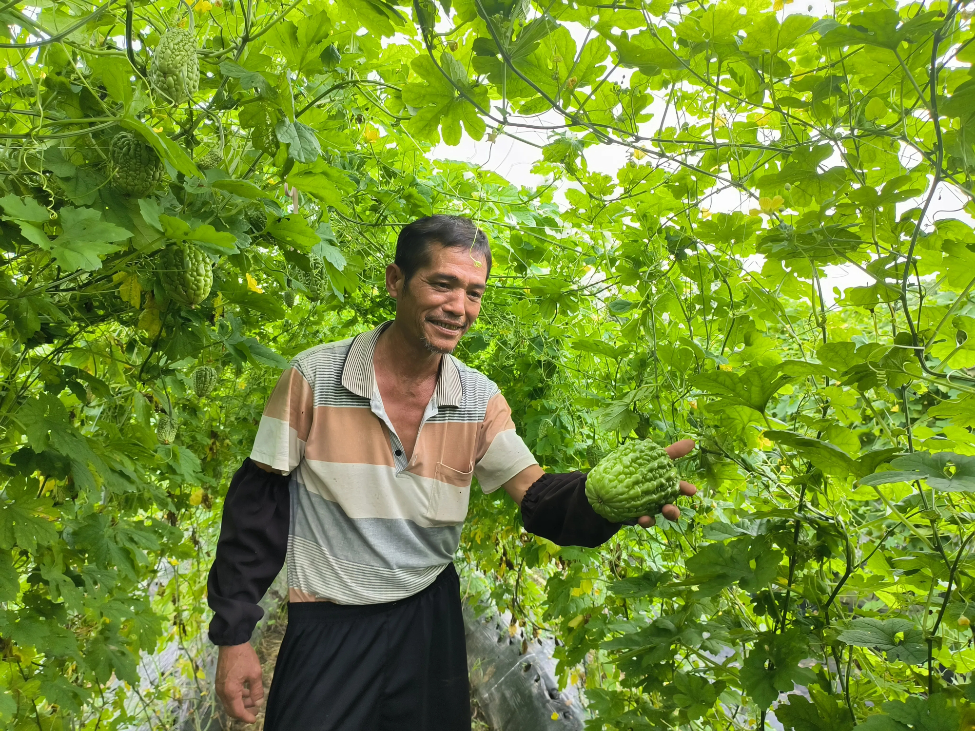 在今年極端氣候下試種苦瓜品種仍獲高產(chǎn)。 惠州日?qǐng)?bào)記者謝菁菁 通訊員藍(lán)新月 許建輝 攝