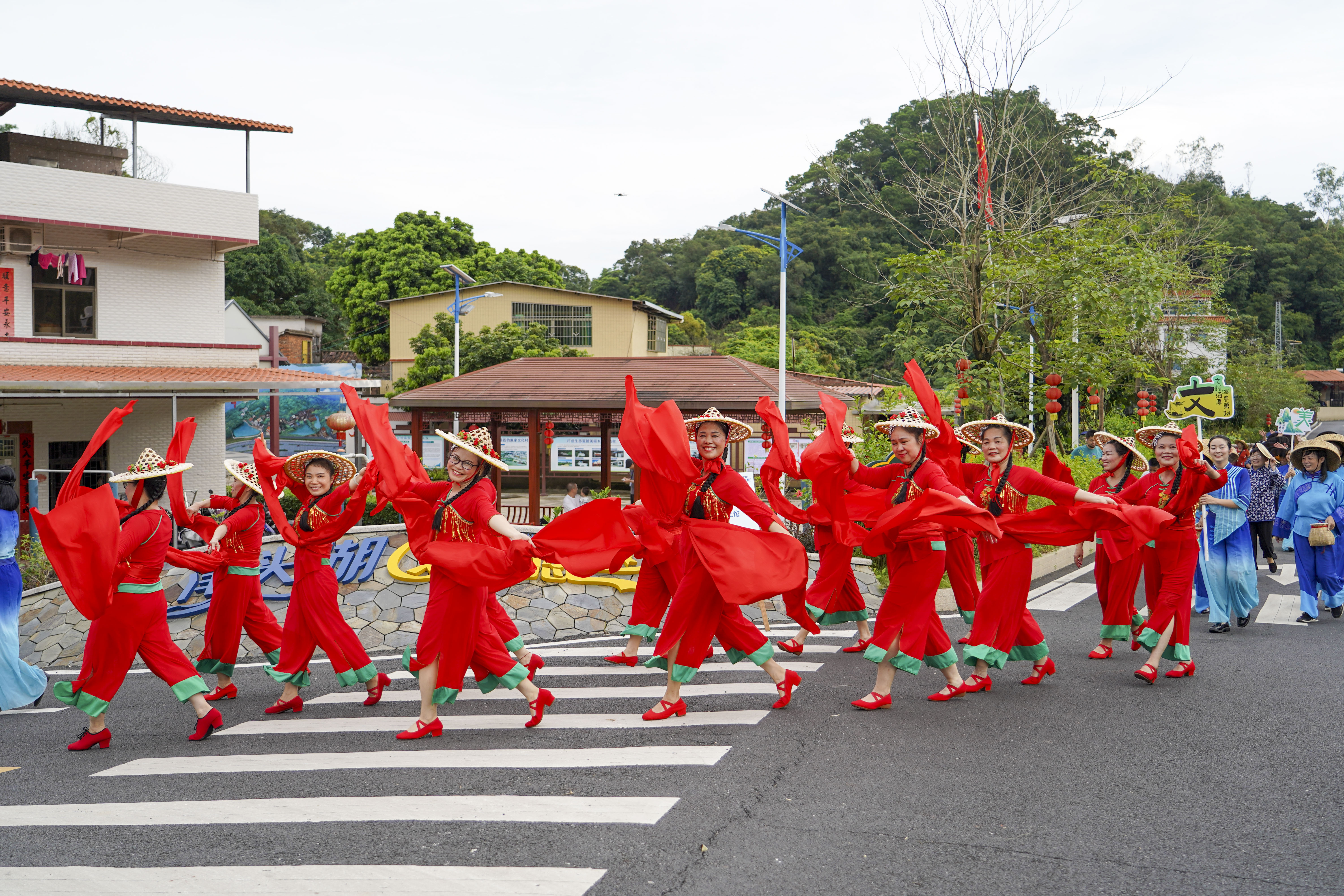 身穿傳統(tǒng)漁家服飾的巡游隊伍。