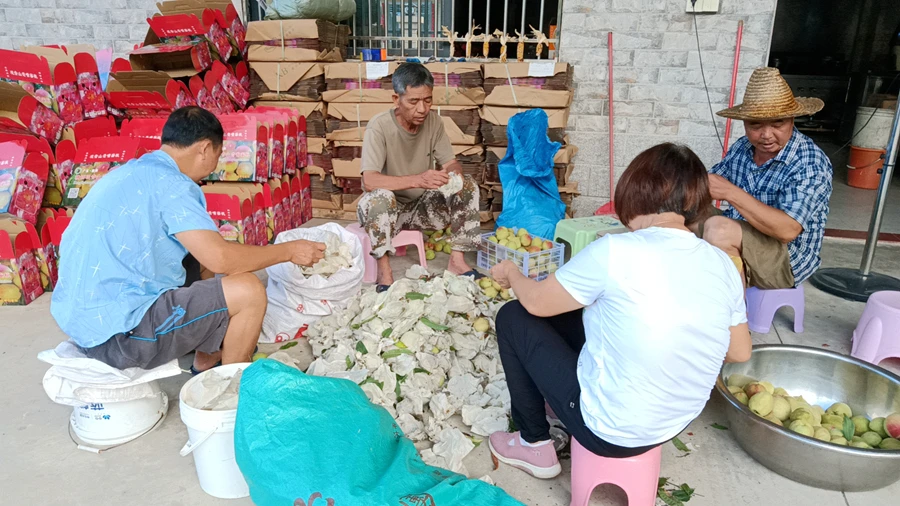 果農(nóng)們忙碌著分撿、稱重、打包。