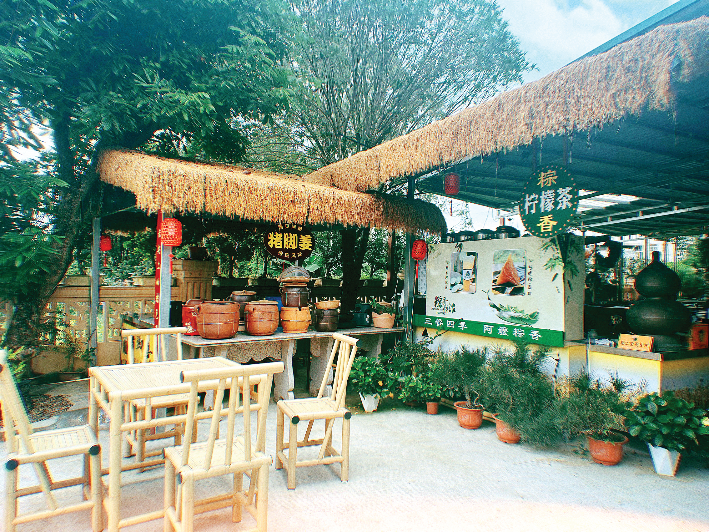 “黃家和苑”院子一樓打造成一個休閑團建場地,二樓設置了一個“阿嬤粽體驗館”,每天早上有當?shù)匕咴诎兆樱慰涂梢砸煌w驗親手包粽子。嚴敏還順勢當起了“家鄉(xiāng)美食推介官”。火爆社交網(wǎng)絡的阿嬤粽,讓澳背村40多名村民實現(xiàn)了家門口就業(yè)。今年端午節(jié)阿嬤粽的銷售額超過80萬元!包S家和苑”也變身體驗感拉滿的農(nóng)家小院,還創(chuàng)新研發(fā)了粽香檸檬茶、枧水粽做成的阿嬤糖水,晚上在庭院可一邊品嘗碳爐奶茶、碳爐羊肉和燒烤,一邊觀賞漫天星空,美食美景相融好不愜意。