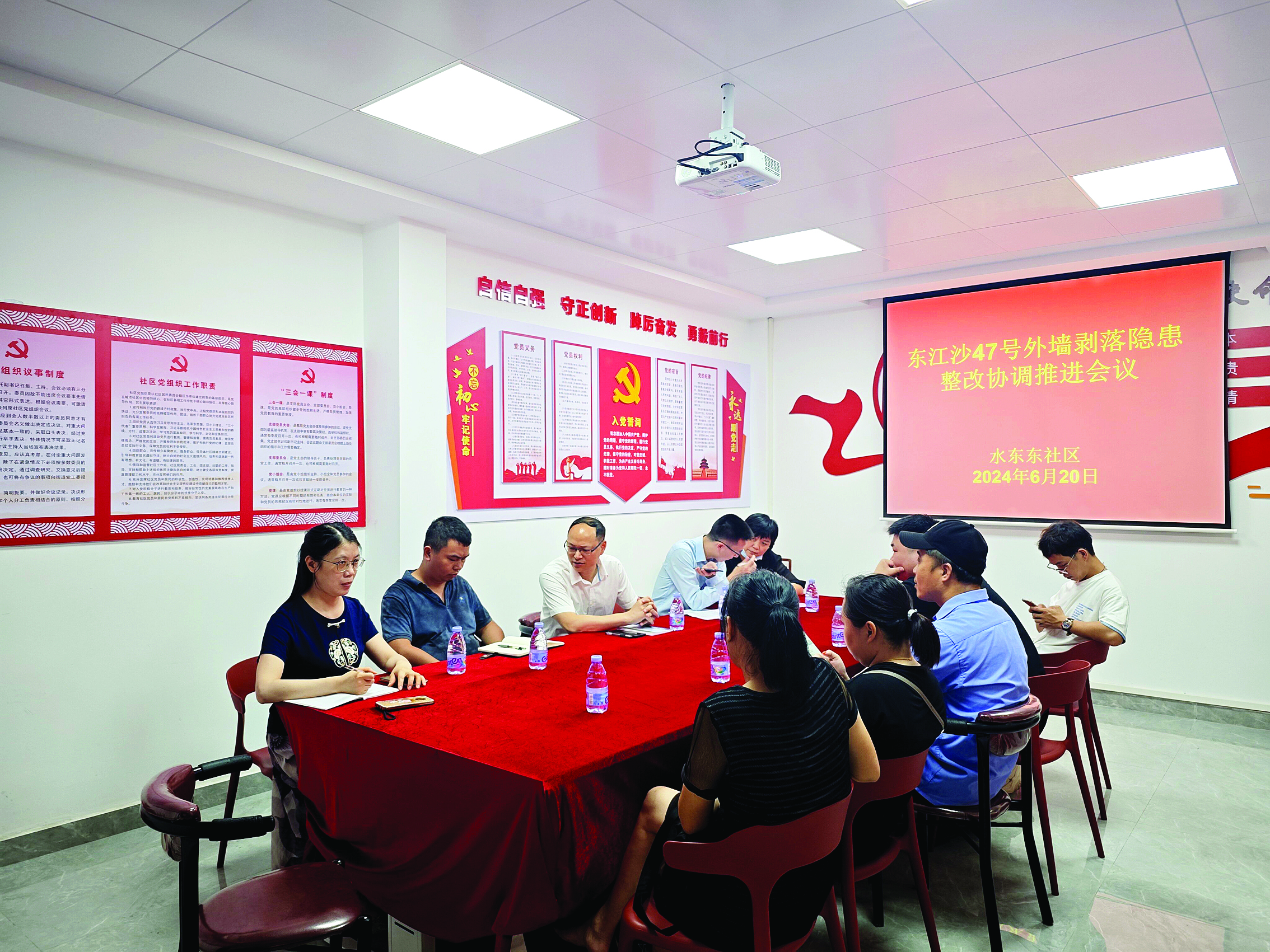 水東東社區(qū)黨委召集東江沙47號樓棟業(yè)主和住戶召開協調會議。