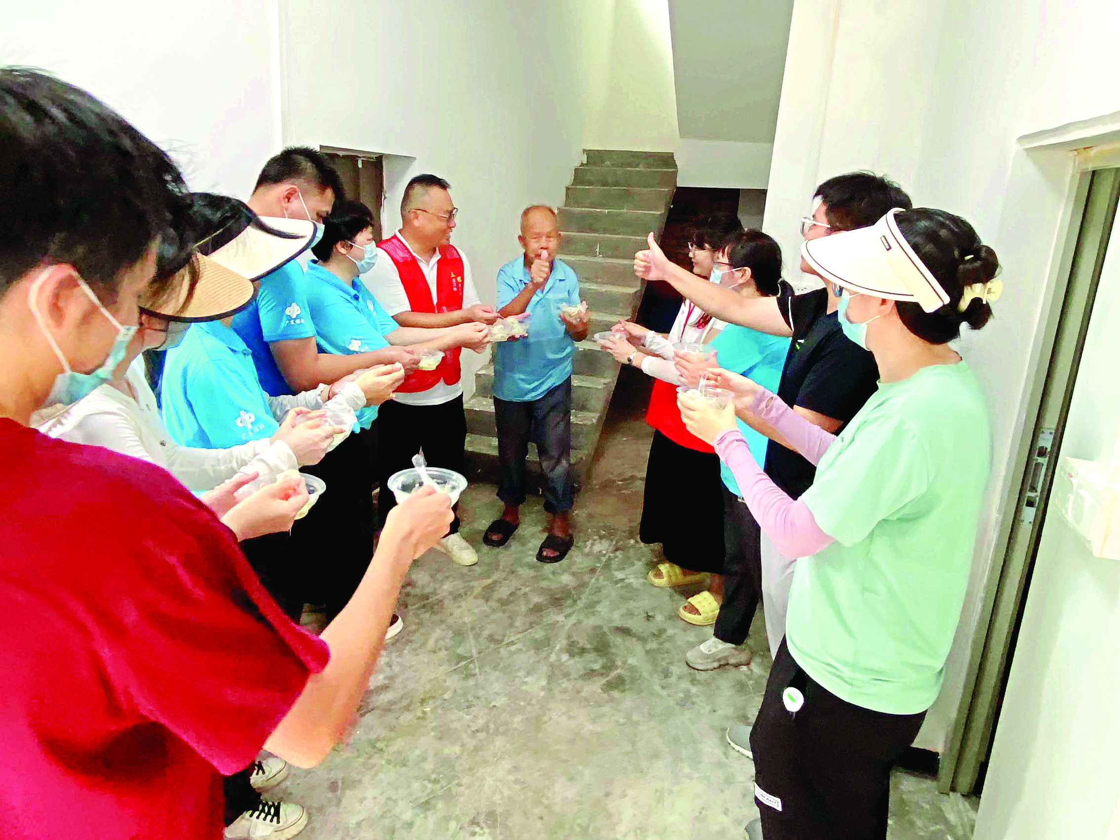 大家和張叔一起吃餃子,慶祝他入住新家。 本組圖片 惠州日報記者彭紅霞 通訊員陳子韜 李美仙 攝