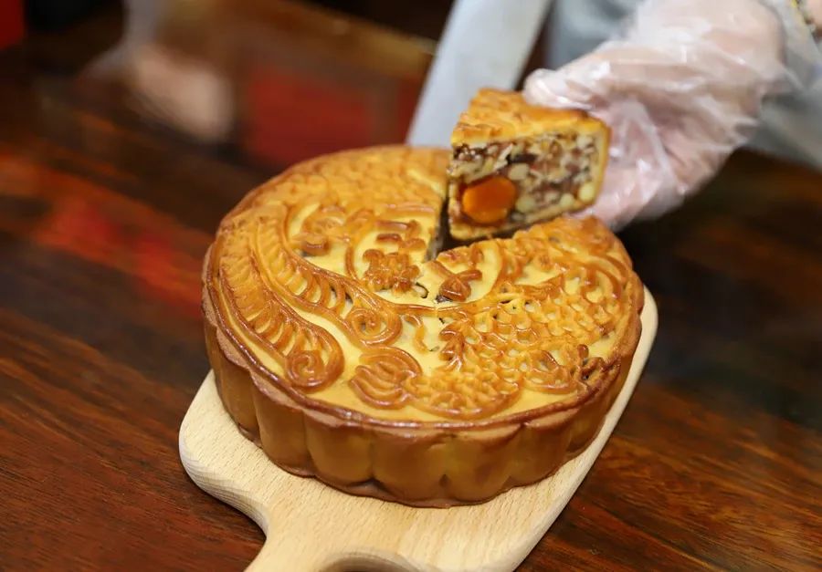 目前,郭師傅在以傳統(tǒng)月餅為主導(dǎo)的同時(shí),緊跟市場(chǎng)需求,不斷進(jìn)行口味創(chuàng)新研發(fā),例如研發(fā)了鹽焗雞味、芥末味、咖喱味月餅。為了打開全國(guó)各地市場(chǎng),今年郭師傅還推出了“廣東辣”的麻辣牛肉月餅,先行先試,反響不錯(cuò)。據(jù)郭師傅第四代傳承人郭漢光介紹,今年月餅銷售供不應(yīng)求,最高峰一天生產(chǎn)近30萬個(gè)月餅,今年中秋期間預(yù)計(jì)能銷出月餅超300萬盒。