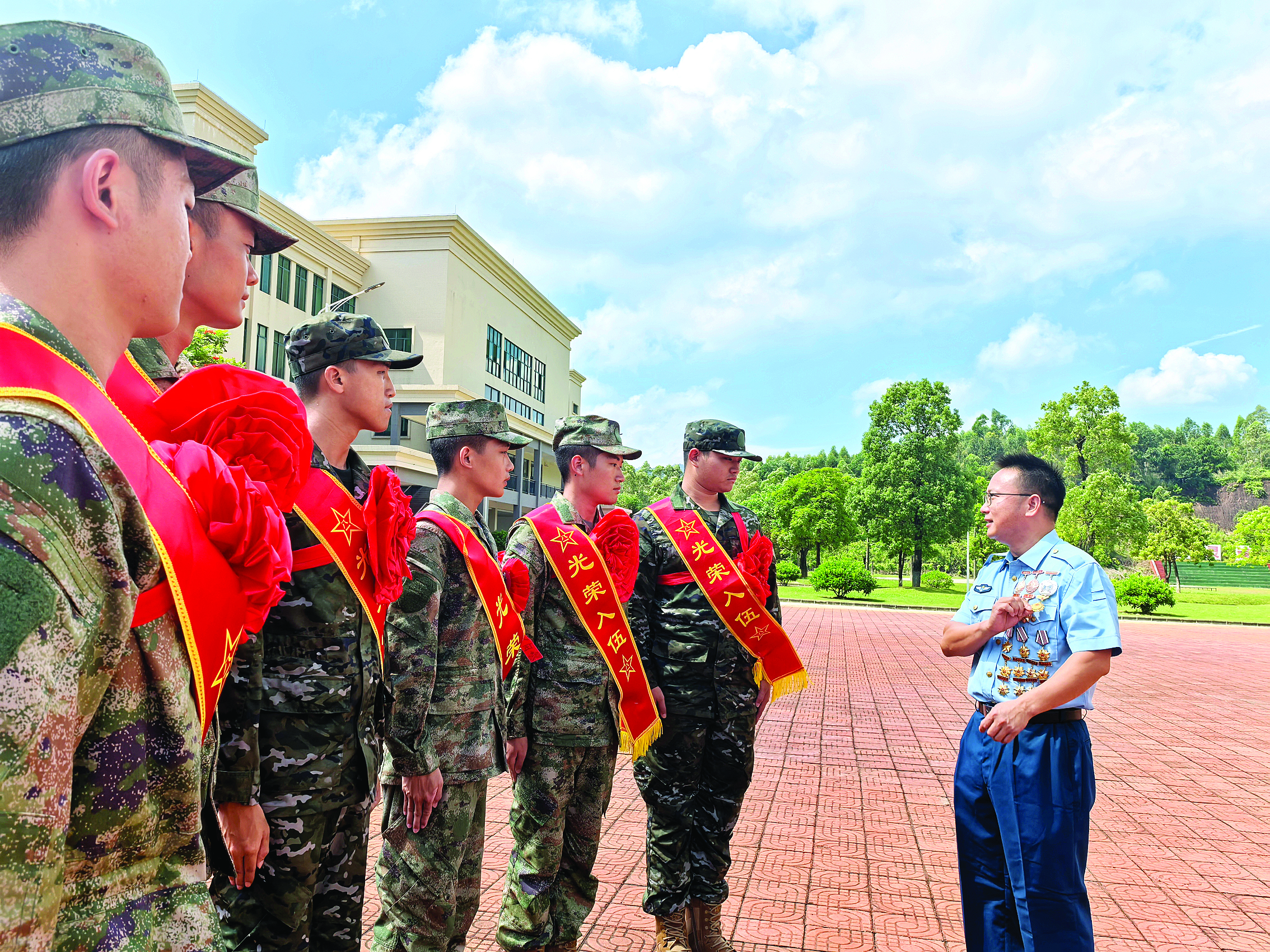 優(yōu)秀退役軍人代表張敏向即將奔赴軍營(yíng)的惠城新兵講述自己在軍營(yíng)立功受獎(jiǎng)的經(jīng)歷,鼓勵(lì)他們努力成為一名“四有”新時(shí)代革命軍人。