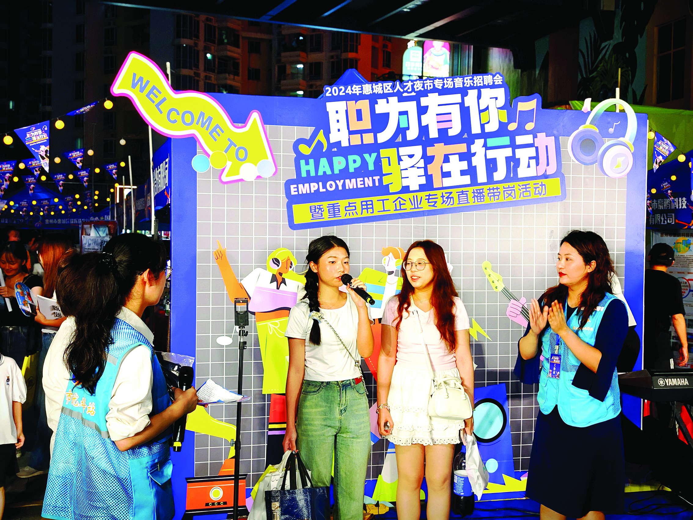 惠城青年參與人才夜市招聘會互動環(huán)節(jié)。