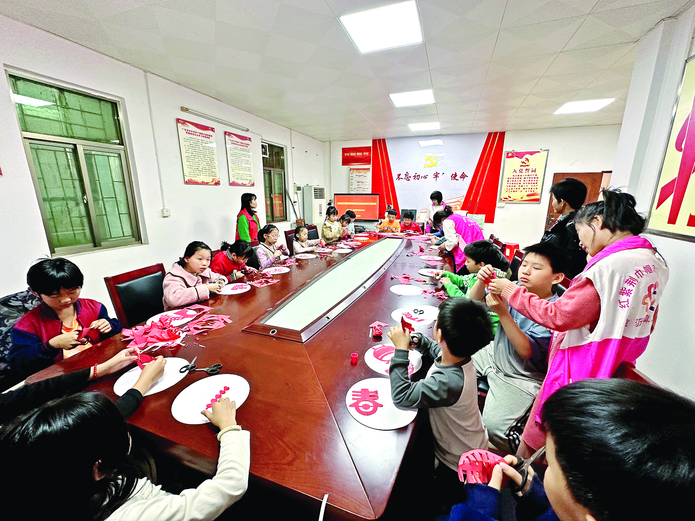 傳統(tǒng)窗花剪紙手工活動(dòng)現(xiàn)場(chǎng)。 惠州日?qǐng)?bào)記者謝菁菁 特約通訊員匡贇 通訊員鐘如茵 黃文南 攝