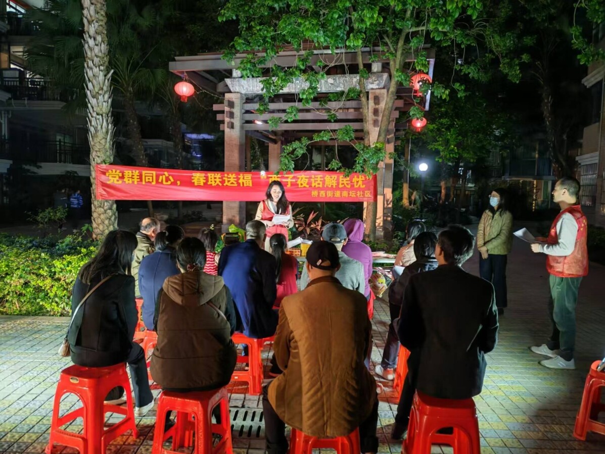 如,南壇社區(qū)黨委攜手湖景花園黨支部舉辦了一場以“黨群同心,春聯(lián)送福”為主題的“西子夜話”活動,由街道辦事處副主任李夢嫣帶頭利用“夜”余時間“下沉式”聯(lián)系服務(wù)群眾,認(rèn)真聽取關(guān)于小區(qū)建設(shè)和治理等難點問題。