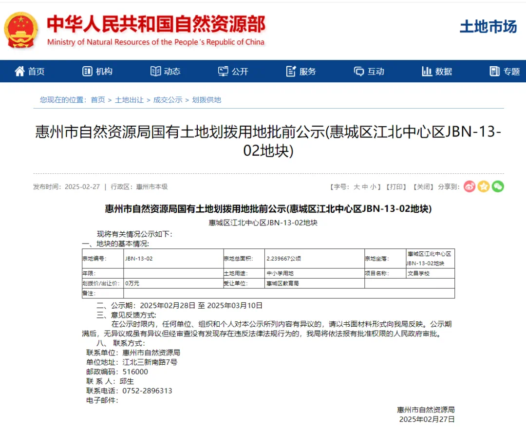 《惠州市自然資源局國有土地?fù)苡玫嘏尽罚?/p>