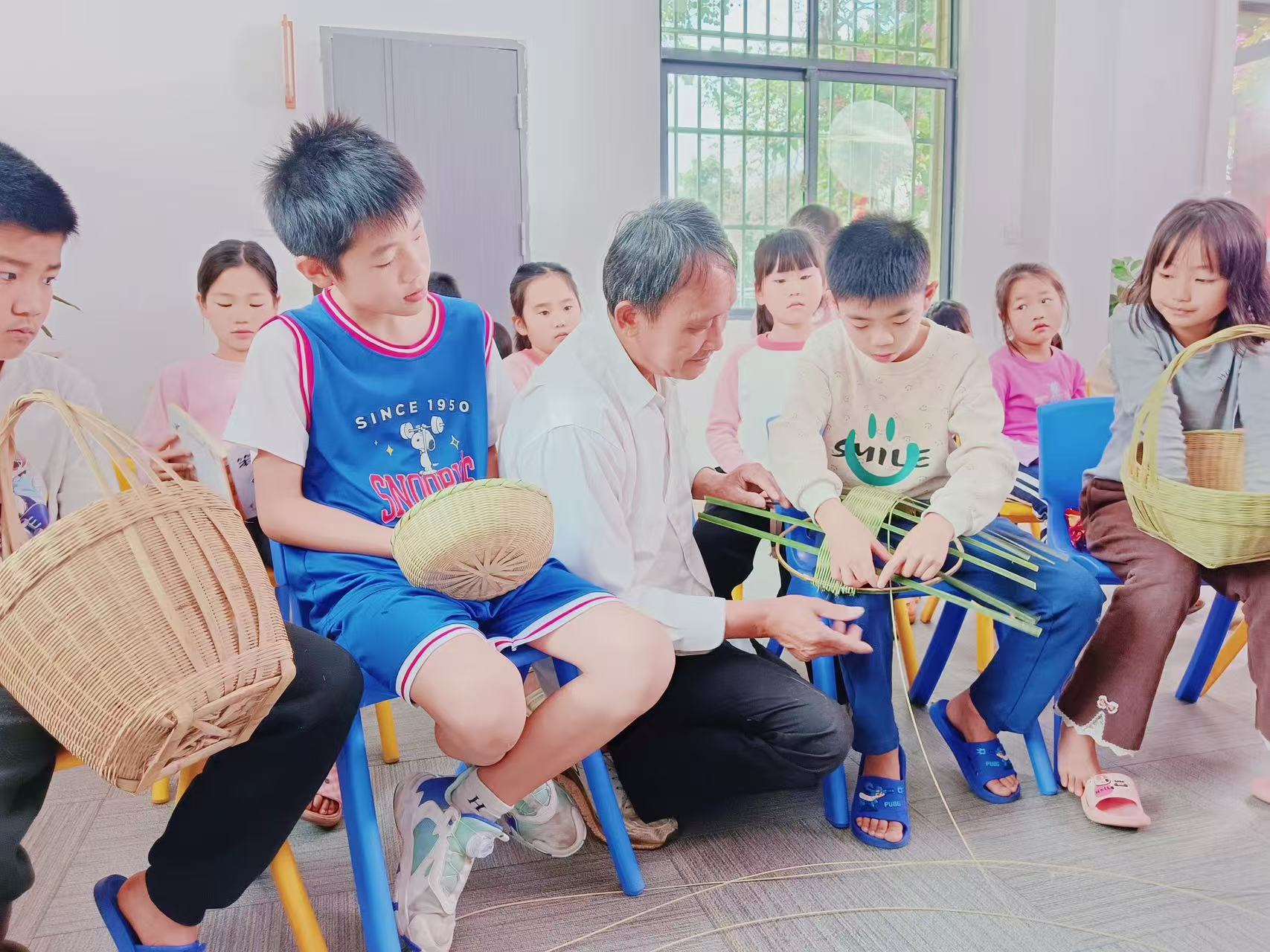 活動(dòng)中,東勝村竹編手藝人現(xiàn)場為孩子們示范劈篾、編織等技法,展示從選竹、破竹到編織的全流程。孩子們?cè)诶辖橙说南ば闹笇?dǎo)下,沉浸式體驗(yàn)竹籃、竹燈等工藝品的手工制作。黨員志愿者在現(xiàn)場生動(dòng)講解竹編歷史、分享匠人故事,引導(dǎo)孩子們感悟傳統(tǒng)技藝中蘊(yùn)含的工匠精神和非遺魅力。