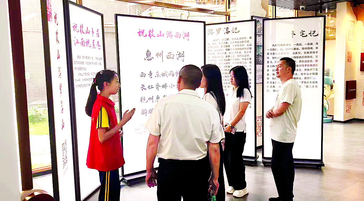小講解員為給游客講述祝枝山與惠州西湖的淵源。 惠州日報記者彭紅霞 通訊員呂嘉琪 張亮 攝