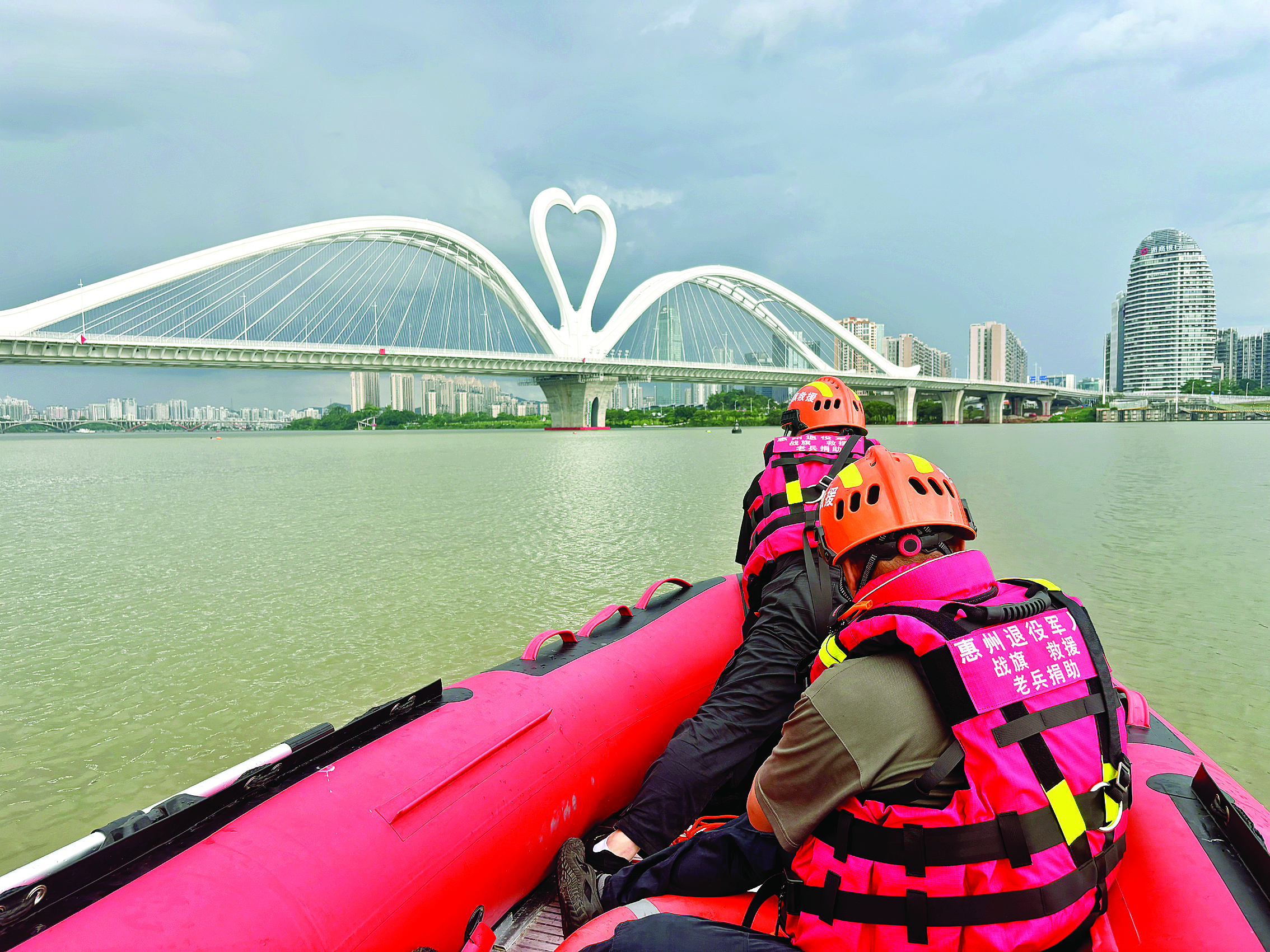應(yīng)急隊(duì)伍隊(duì)員在東江水域巡邏;葜萑?qǐng)?bào)記者謝菁菁 通訊員陳巧梅 攝
