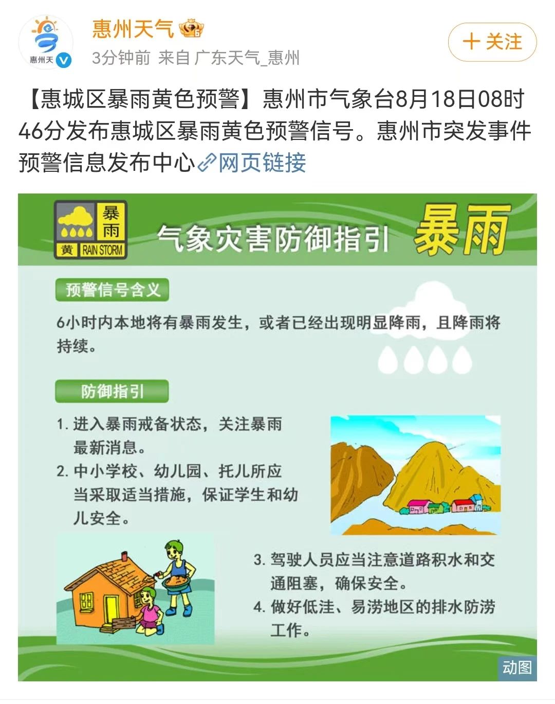 惠城區(qū)暴雨黃色預(yù)警信號,