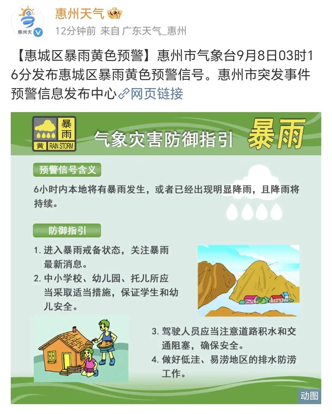 惠城區(qū)暴雨黃色預(yù)警信號,