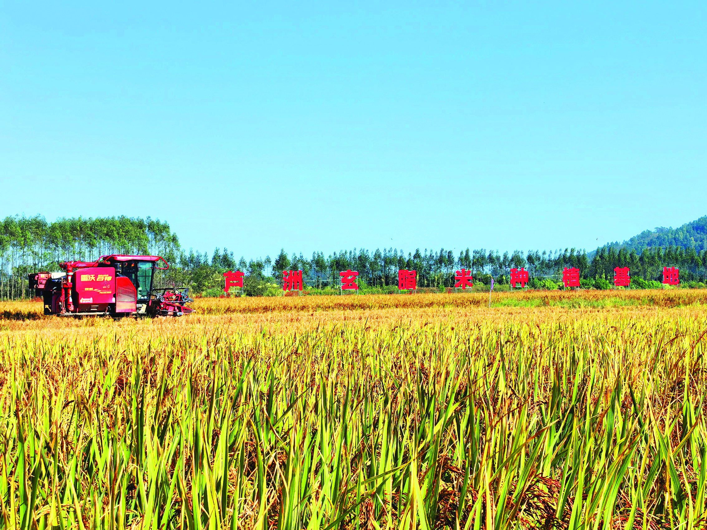 收割機(jī)在收割玄脂米。