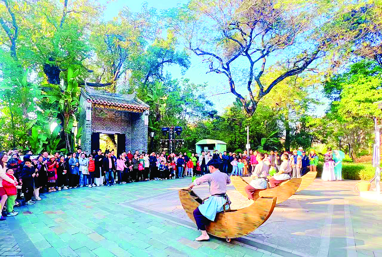 東坡祠景區(qū)以東坡文化為核心,推出《不辭長(zhǎng)作嶺南人》沉浸式演出,還有古箏演奏、漢服體驗(yàn)、詩(shī)詞朗誦等活動(dòng)。游客們身著漢服漫步古祠,在紅墻黛瓦間感受東坡文化的深厚底蘊(yùn);趣味投壺、詩(shī)詞問(wèn)答等互動(dòng)游戲,更是讓老少游客樂(lè)在其中,在歡聲笑語(yǔ)中領(lǐng)略傳統(tǒng)文化的魅力。