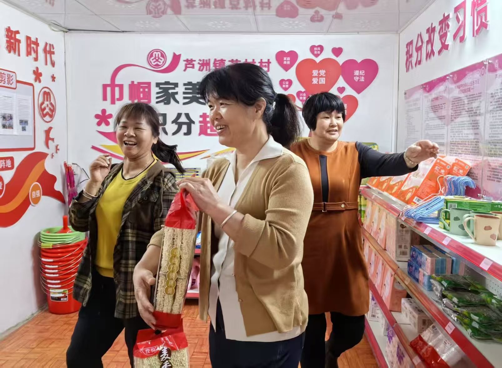 蘆村村民在積分超市兌換生活用品。