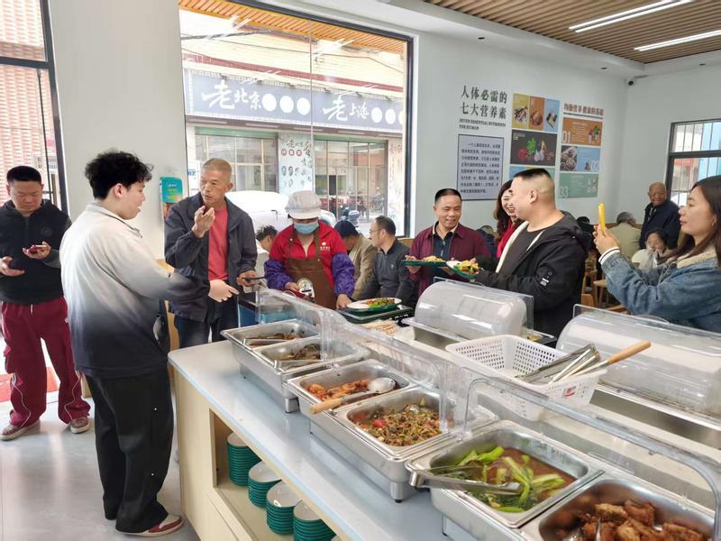 惠民食堂試業(yè)吸引眾多居民就餐;葜萑請笥浾吲砑t霞 通訊員何淑娟 攝