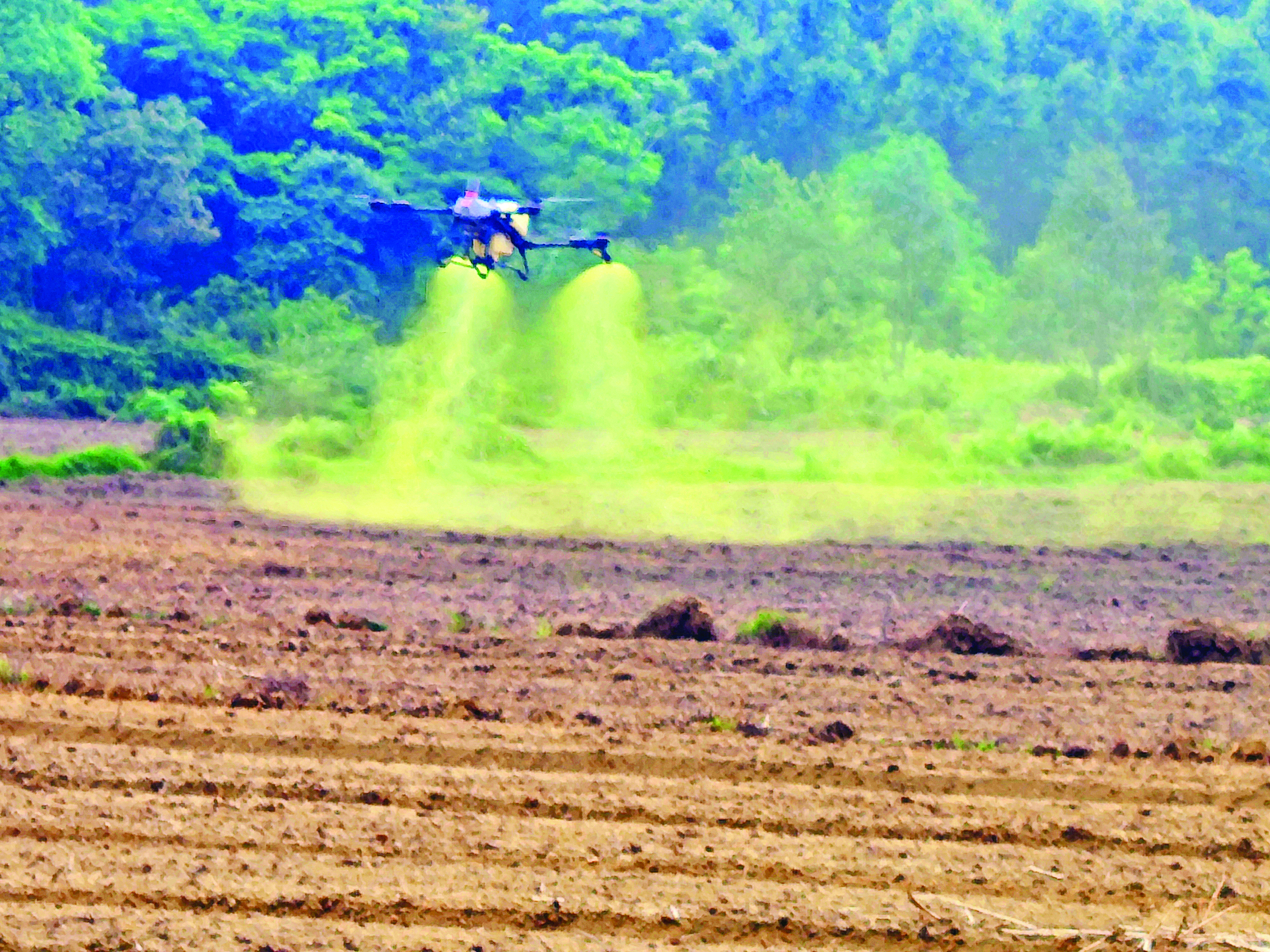 無(wú)人機(jī)噴施肥料展現(xiàn)高效便捷的現(xiàn)代化耕種模式。